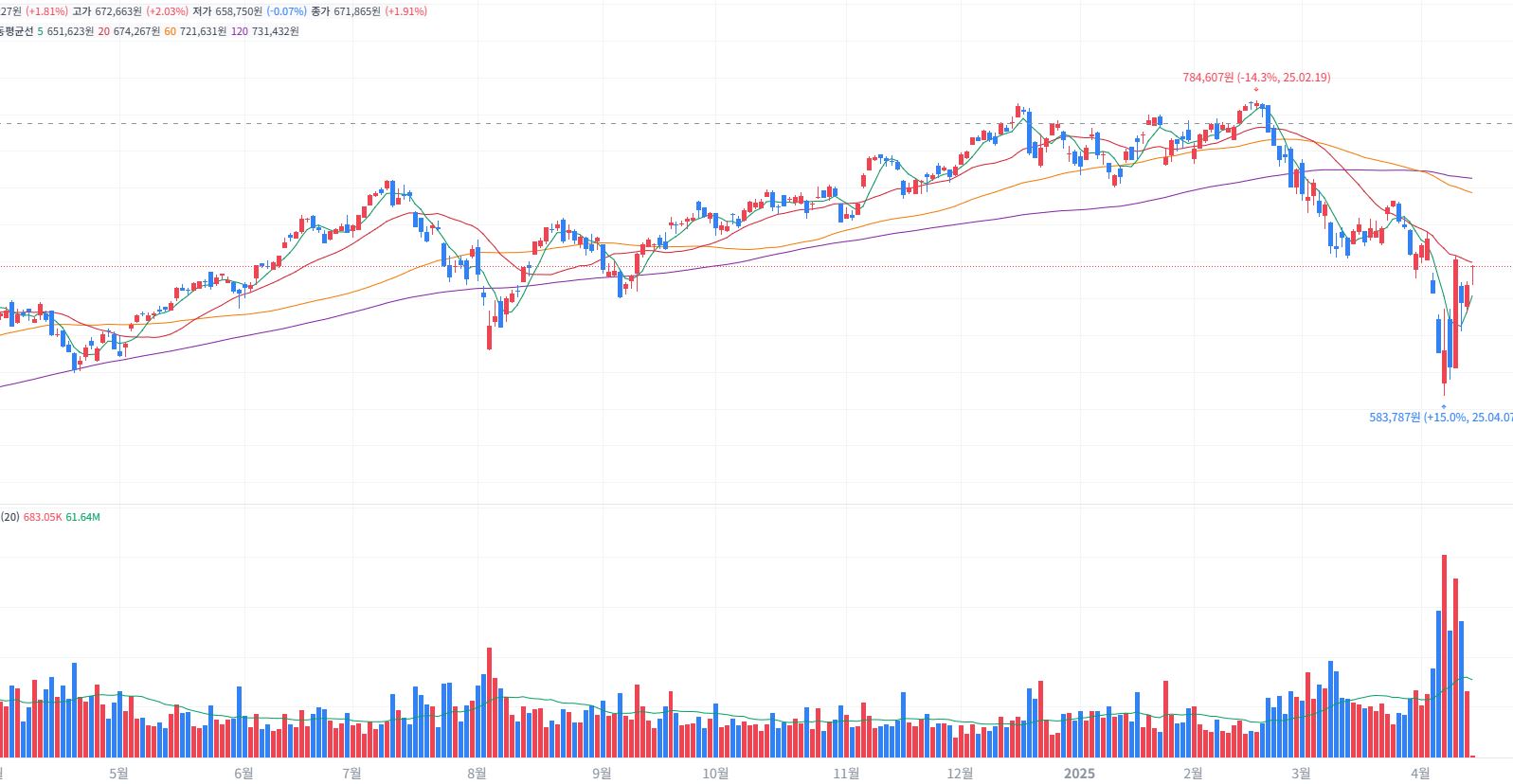 | 시장 전망 | 지지선 근처에서의 반등 가능성 |
